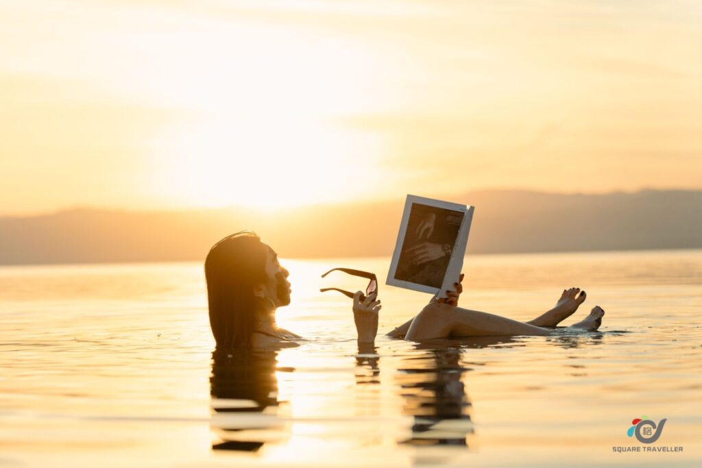躺在死海上轻松漂浮,感受天然盐水的独特浮力与宁静疗愈体验。