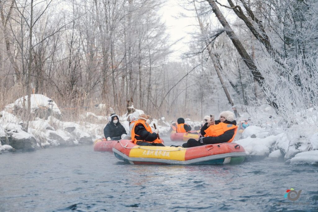 搭乘橡皮艇开启魔界雾凇漂流,欣赏两岸雾凇奇观。